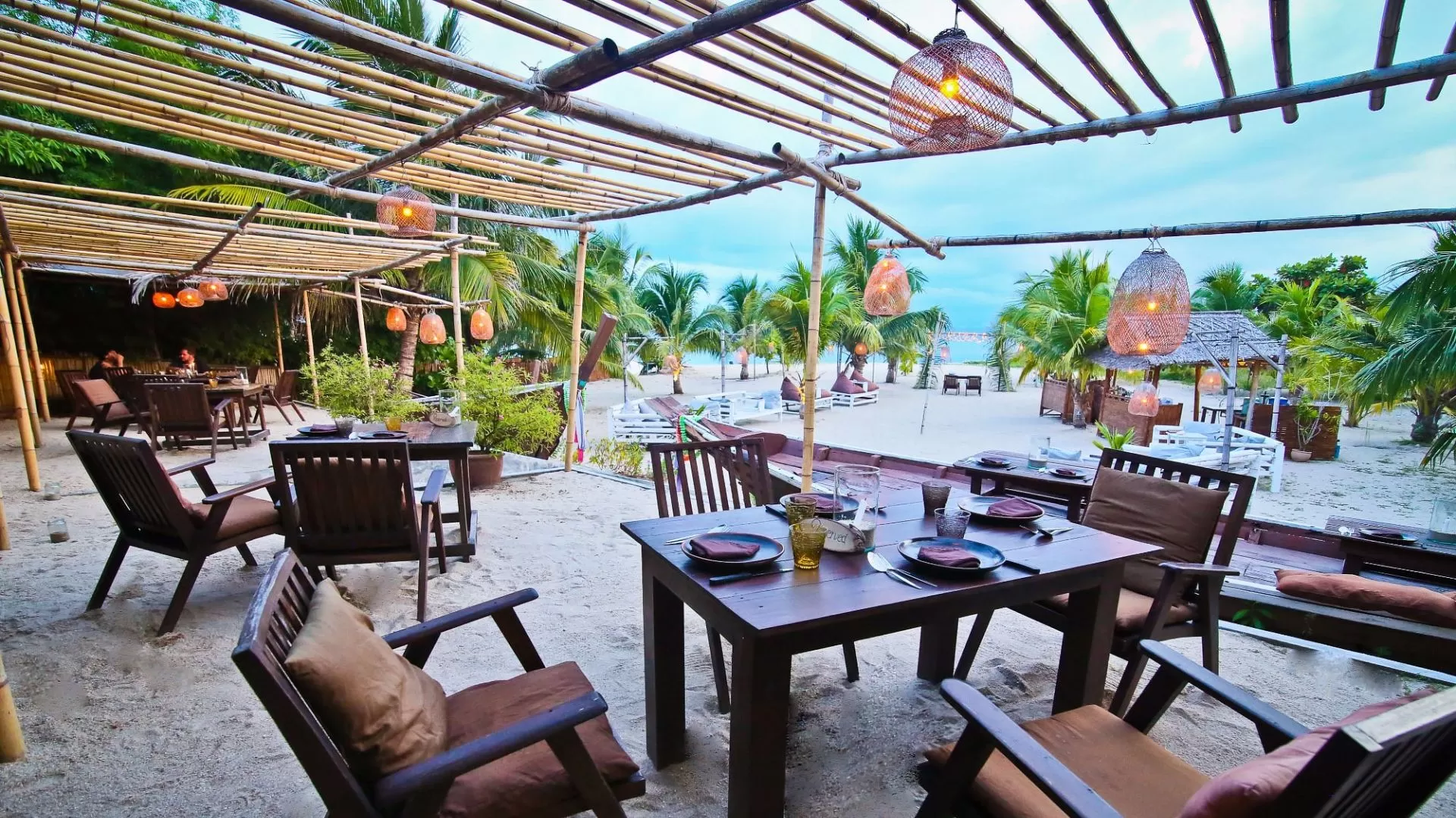 Situé en bord de plage, Sandals propose des spécialités de fruits de mer et une cuisine vietnamienne dans un cadre relaxant, parfait pour un repas en fin de journée.