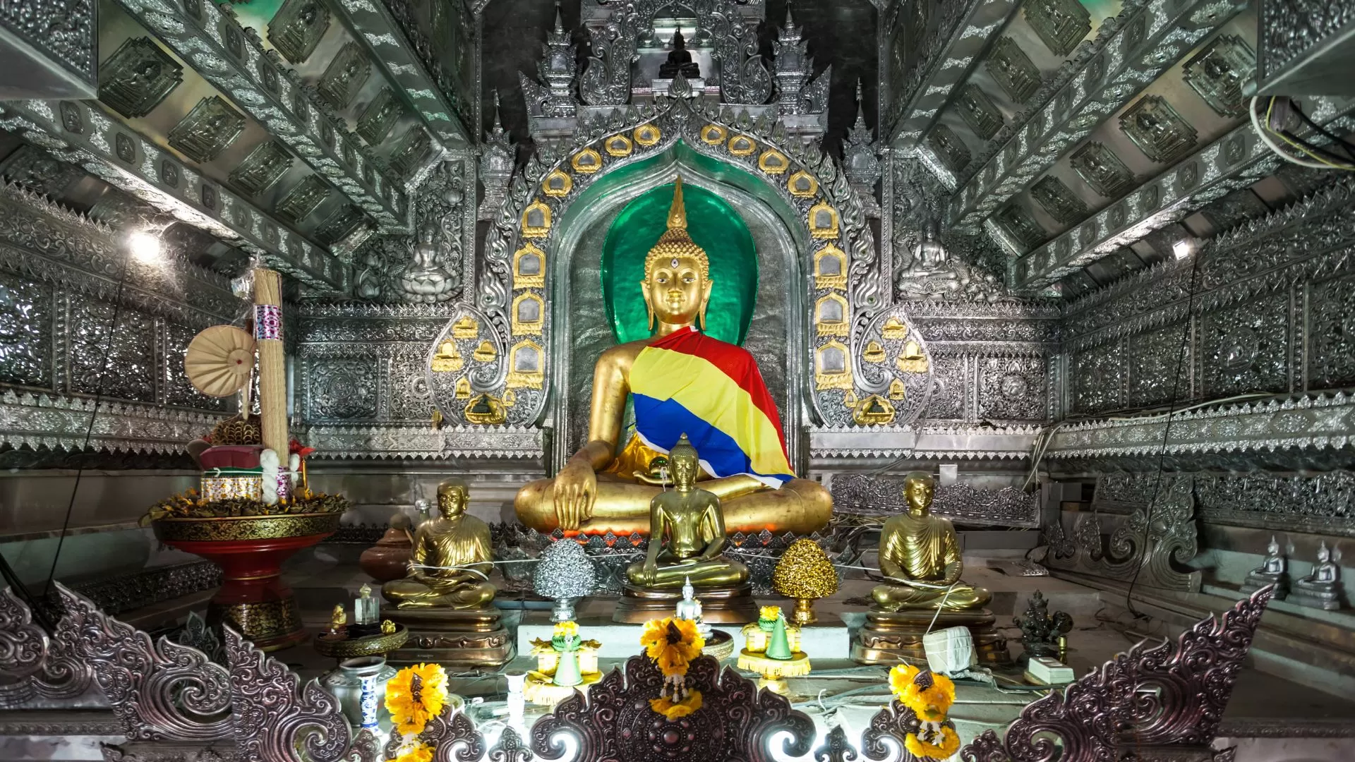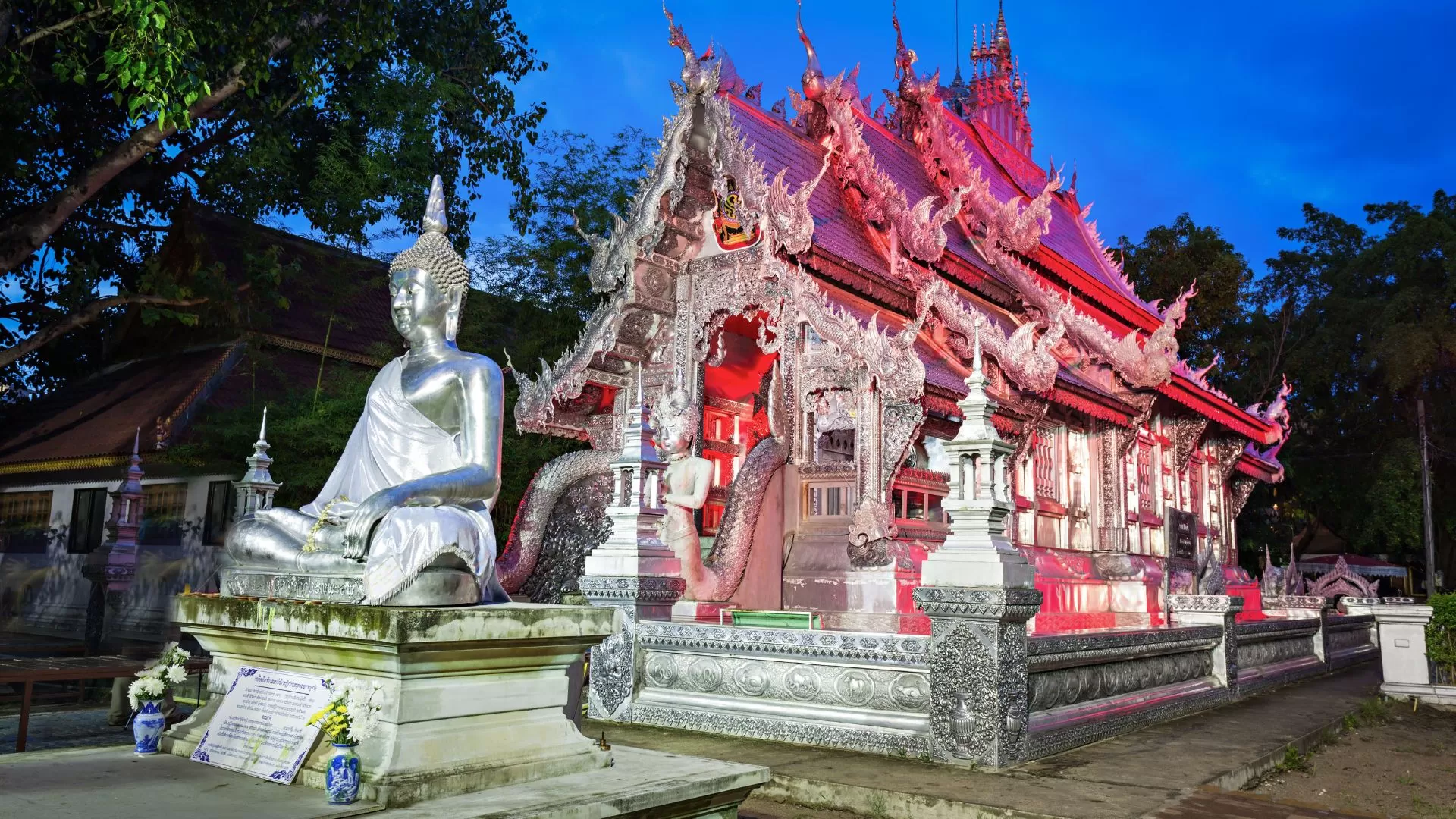 Situé dans le quartier des artisans, ce temple se distingue par ses décorations en argent finement travaillées. Wat Sri Suphan offre une expérience culturelle particulière, notamment grâce à l’accès à son ordination hall, rarement ouvert au public. C’est un temple Chiang Mai centre ville qui mérite une visite pour son originalité.
