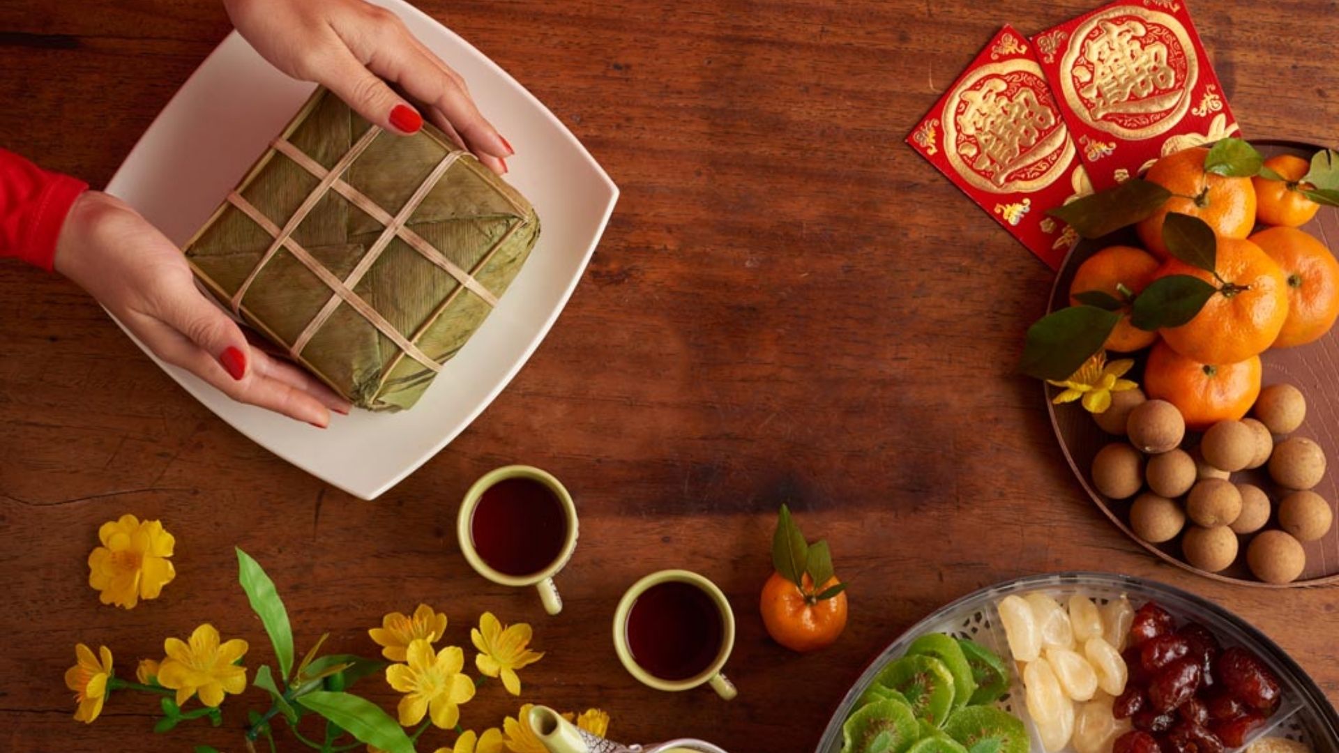 Le Tết Nguyên Đán, ou le Nouvel An lunaire vietnamien, marque le commencement du printemps. Pendant cette période, deux plats spécifiques prennent une place centrale des plats vietnamiens de printemps : le Bánh Tét et le Bánh Chưng. Ce sont des gâteaux de riz gluant farcis de haricots mungo et de poitrine de porc, enveloppés dans des feuilles de bananier. Le Bánh Chưng, de forme carrée, symbolise la Terre, tandis que le Bánh Tét, cylindrique, représente le Ciel. La préparation de ces gâteaux est un processus familial qui précède les festivités du Tết, et leur saveur unique capture l’essence du printemps vietnamien.