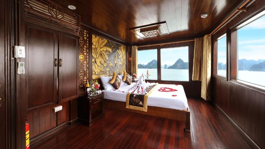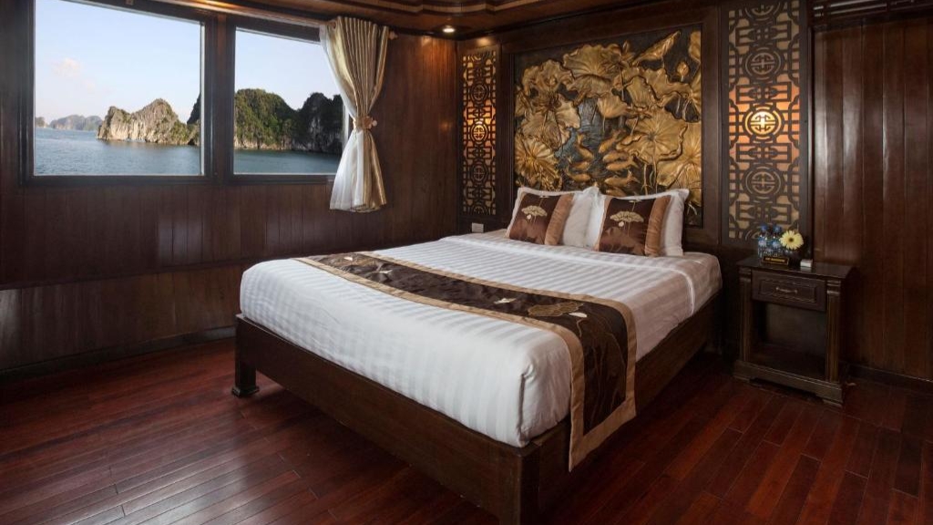 Renea Cruise Ha Long propose des cabines élégantes et chaleureuses, mêlant design traditionnel vietnamien, matériaux naturels et touches artisanales locales. Chaque cabine offre confort moderne, espace cosy et grandes ouvertures pour profiter pleinement des panoramas sur la baie et les formations karstiques environnantes. L’atmosphère raffinée et paisible à bord crée un cadre idéal pour un séjour ressourçant et immersif au cœur de la baie de Bai Tu Long.