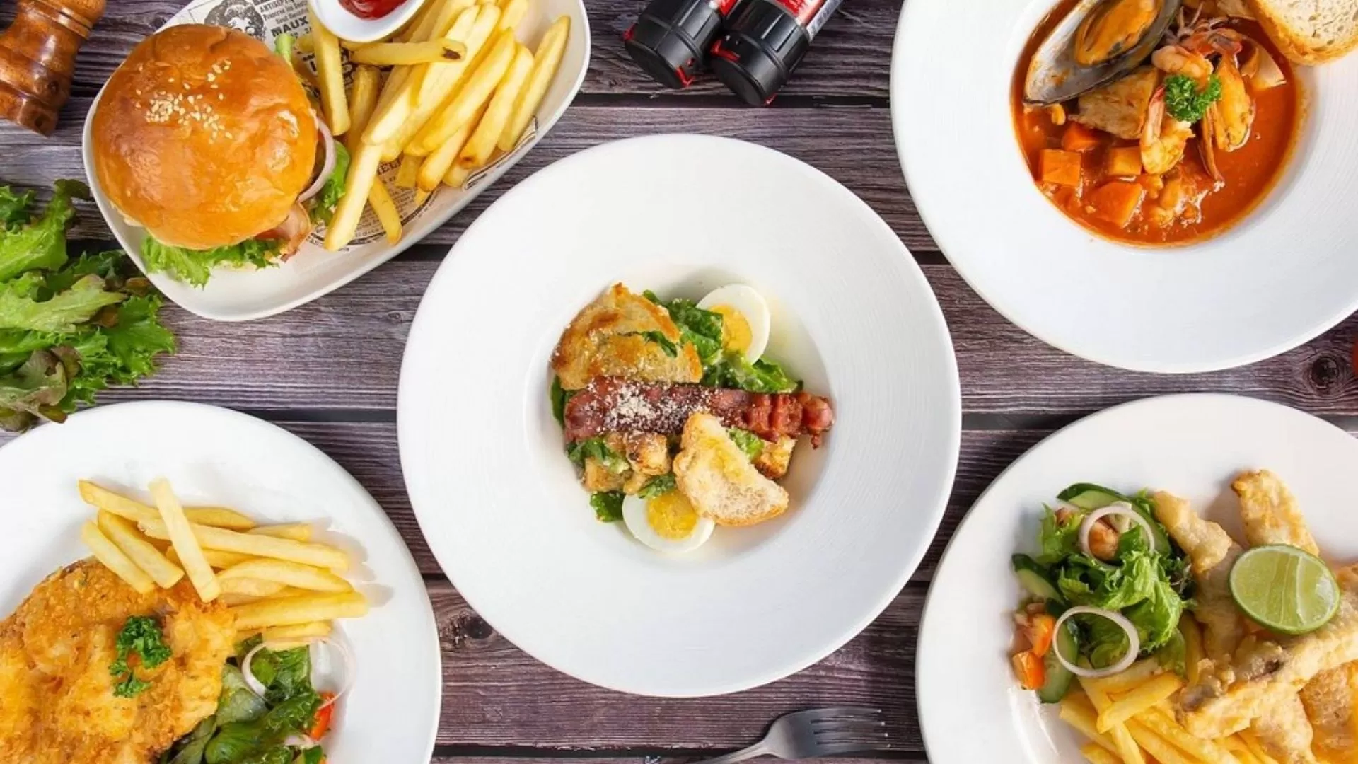 • Wagyu beef burgers, crispy fish & chips and spicy chicken wings.