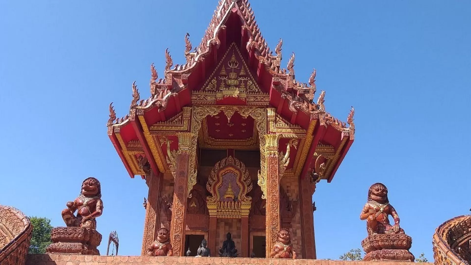 Visit Wat Phou Khao Kaew, a serene riverside temple perfect for quiet reflection, especially at sunset when golden light glows over the Mekong.