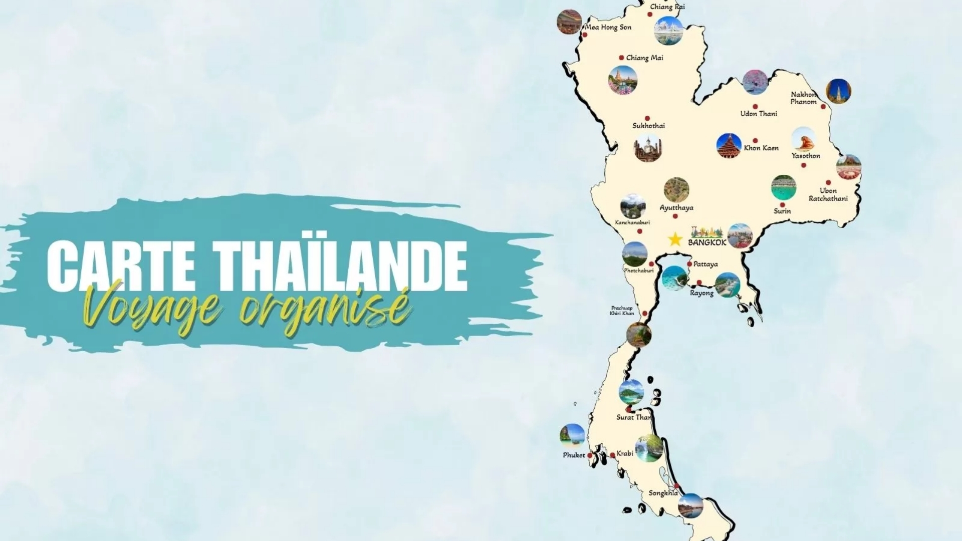 Ce guide vous emmène à la découverte des lieux incontournables : le charme culturel de Chiang Mai, les ruines anciennes d’Ayutthaya, l’effervescence des rues de Bangkok, les côtes apaisantes de Krabi et la vie insulaire réputée de Phuket. Entre expériences culturelles et escapades nature, cette carte vous aide à planifier votre voyage en toute simplicité.
