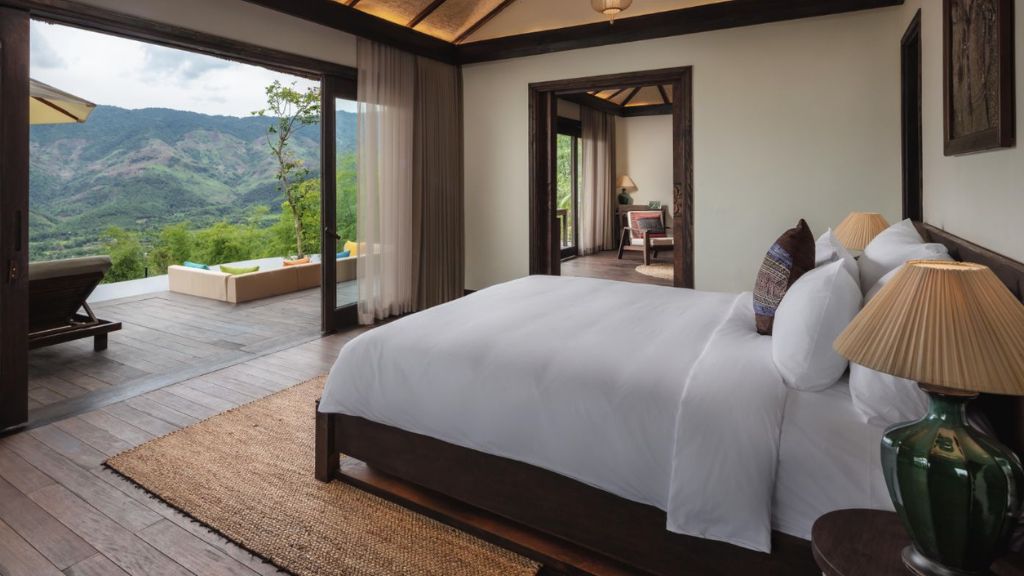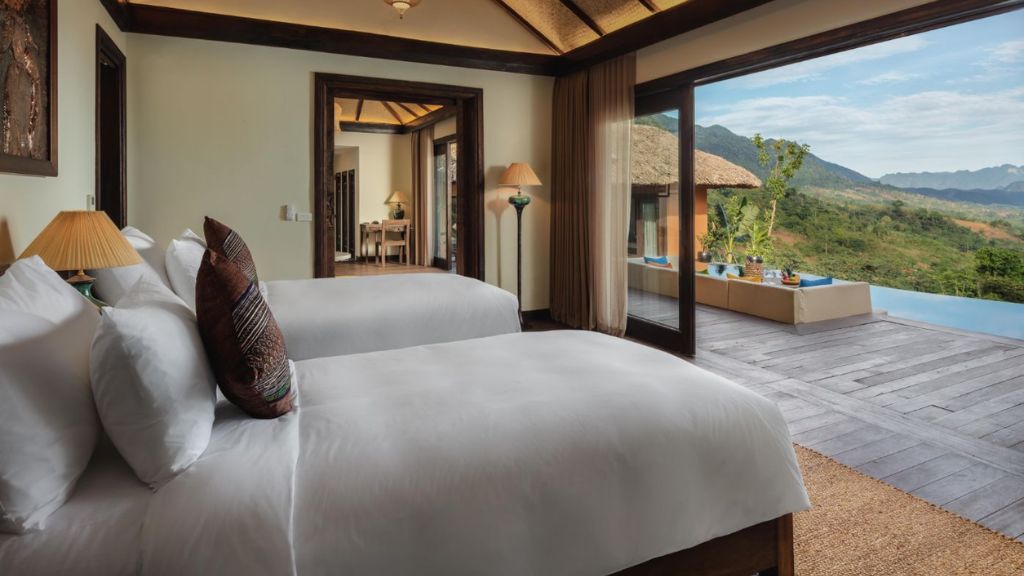 Avana Retreat vous accueille dans des villas élégantes nichées entre rizières, vallons et cascades, sublimées par des matériaux naturels et un artisanat montagnard authentique. Chaque espace offre une atmosphère chaleureuse et apaisante, avec larges baies vitrées ouvertes sur la forêt et terrasses privées pour se ressourcer. L’harmonie entre confort contemporain et traditions locales crée un refuge intime, idéal pour un séjour revitalisant au cœur des paysages préservés de Mai Chau