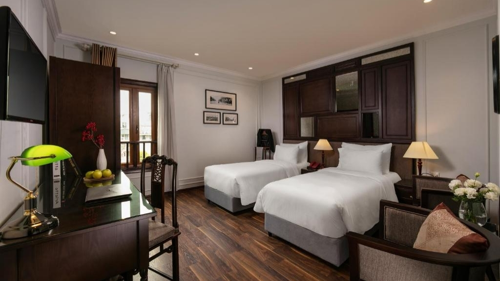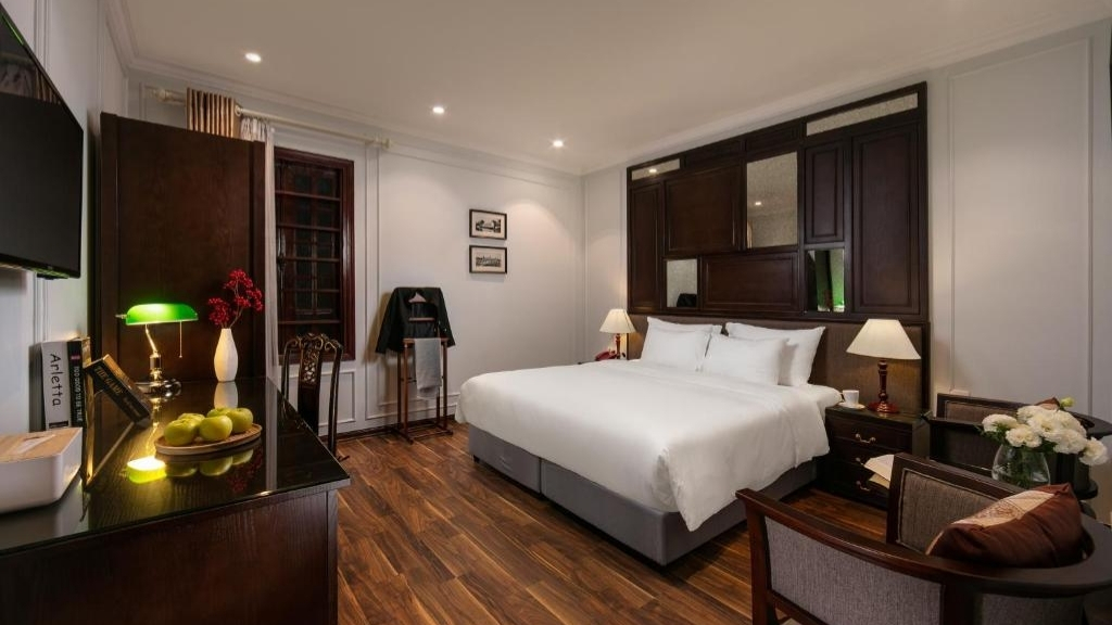 Le Hong Ngoc Dynastie Boutique Hotel & Spa propose des chambres élégantes situées au cœur du district de Hoan Kiem dans le Vieux Quartier de Hanoï. L’établissement dispose d’un restaurant et d’un bar sur place, ainsi que d’un centre de spa. Décorées dans des tons beige doux et agrémentées de mobilier en bois brun, toutes les chambres insonorisées sont équipées
