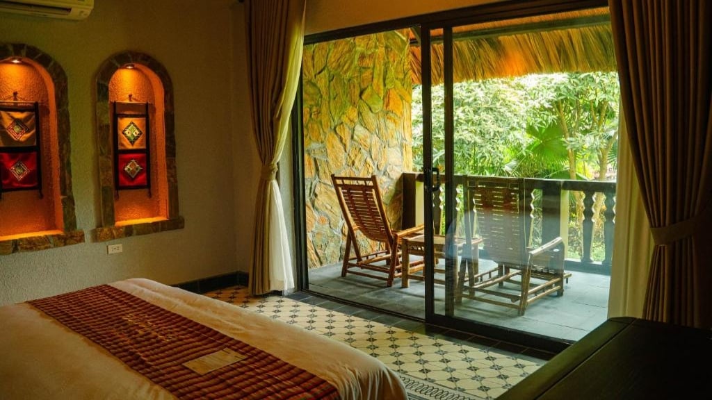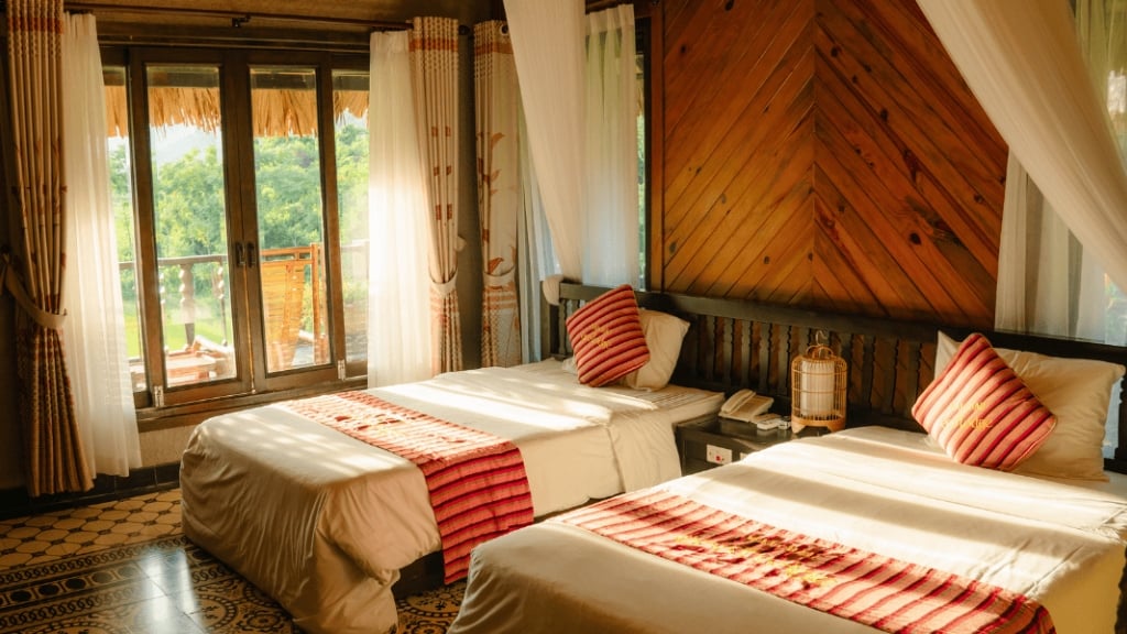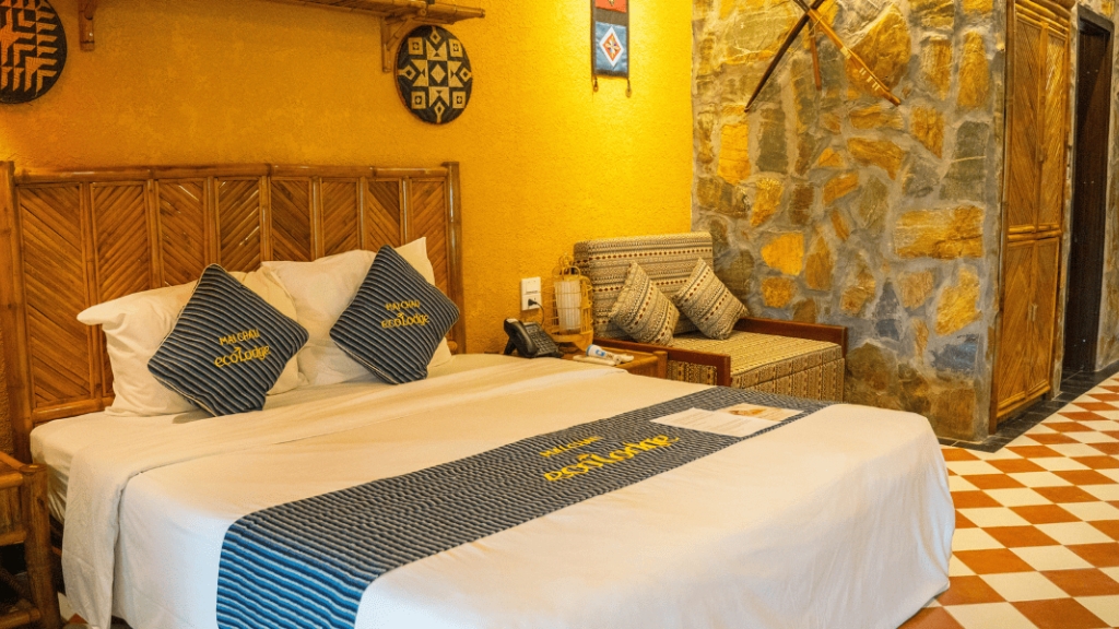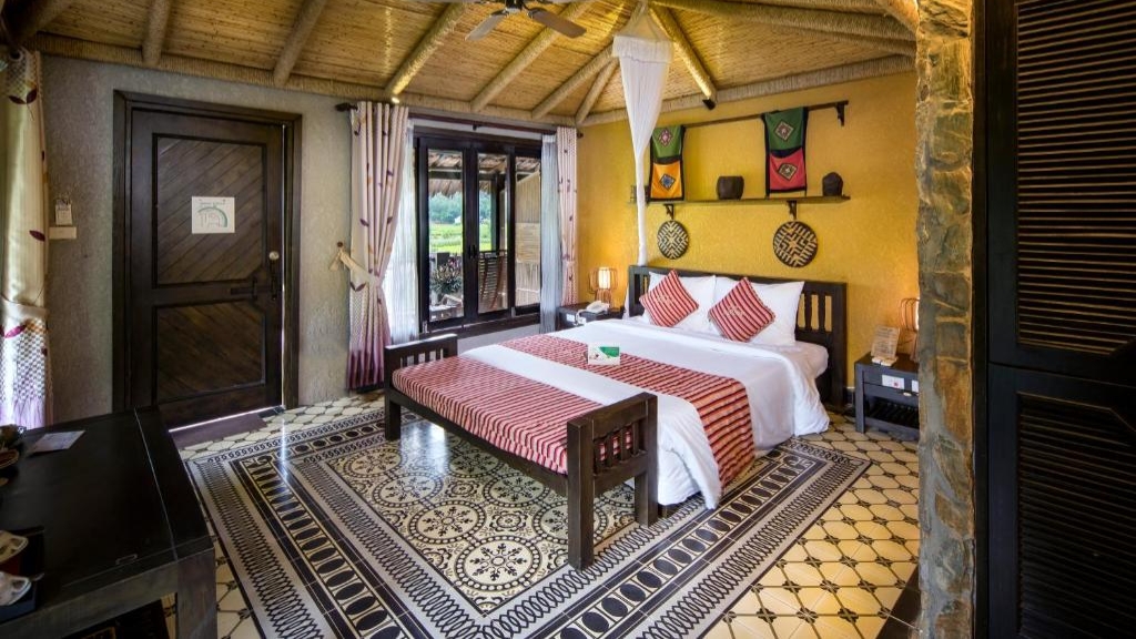Mai Chau Ecolodge vous accueille dans des bungalows et pavillons lumineux, décorés avec goût et intégrant des matériaux naturels ainsi que des touches artisanales locales. Chaque espace combine confort moderne et atmosphère paisible, avec vue sur les collines, les rizières et les villages ethniques, et terrasses privées pour se détendre. L’ambiance est sereine et relaxante, idéale pour un séjour ressourçant au cœur de la nature préservée de Mai Chau.