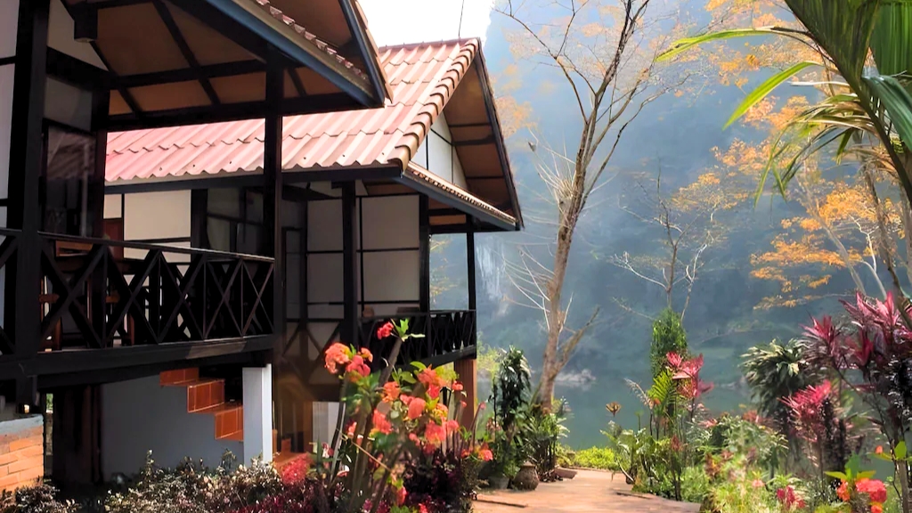 Perché le long des rives paisibles de la Nam Ou, au cœur des formations karstiques emblématiques de Nong Khiaw, Phaxang Resort est un refuge intime où nature et sérénité se rencontrent. Ses bungalows en bois et en rotin, dispersés dans un jardin verdoyant, offrent une atmosphère chaleureuse et une vue apaisante sur la rivière et les montagnes environnantes. Ici, on profite du calme absolu, on se détend au bord de la rivière ou dans la piscine de l’hôtel, et l’on explore la région à travers des balades et activités authentiques.