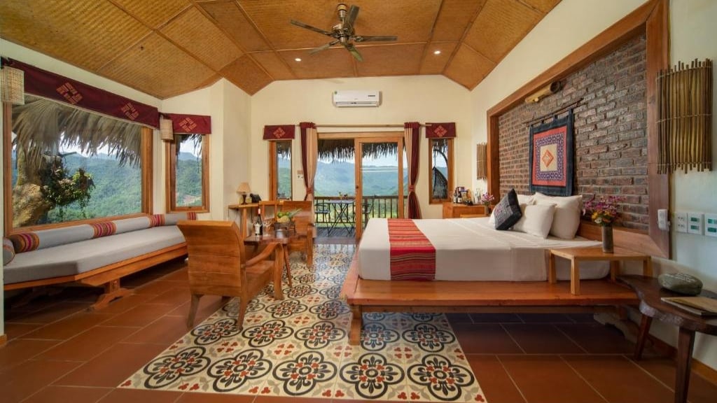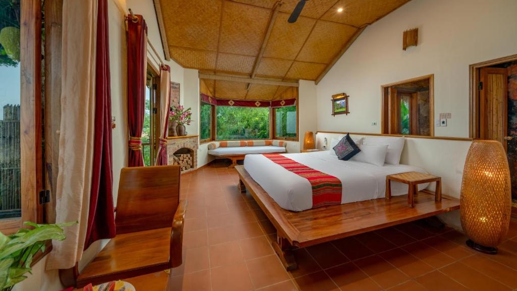 Pu Luong Retreat vous invite à séjourner dans des villas et pavillons lumineux, mêlant matériaux naturels et artisanat local. Chaque hébergement offre confort moderne et atmosphère apaisante, avec vues sur les rizières et les collines, ainsi que terrasses privées pour profiter pleinement du paysage. L’ambiance tranquille et harmonieuse garantit un séjour ressourçant au cœur de la vallée préservée de Pu Luong.