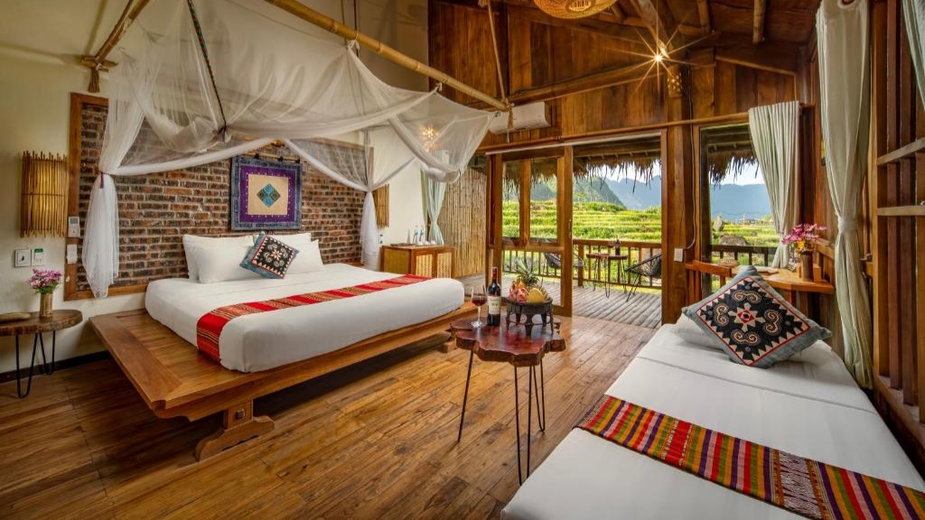 Pu Luong Valley Home vous invite à séjourner dans des lodges et pavillons lumineux, conçus avec des matériaux naturels et des touches artisanales locales. Chaque hébergement offre confort moderne et ambiance chaleureuse, avec des vues imprenables sur les collines et les rizières, ainsi que des terrasses privées pour se détendre. L’atmosphère tranquille et harmonieuse garantit un séjour ressourçant, en pleine immersion dans la beauté préservée de la vallée de Pu Luong.